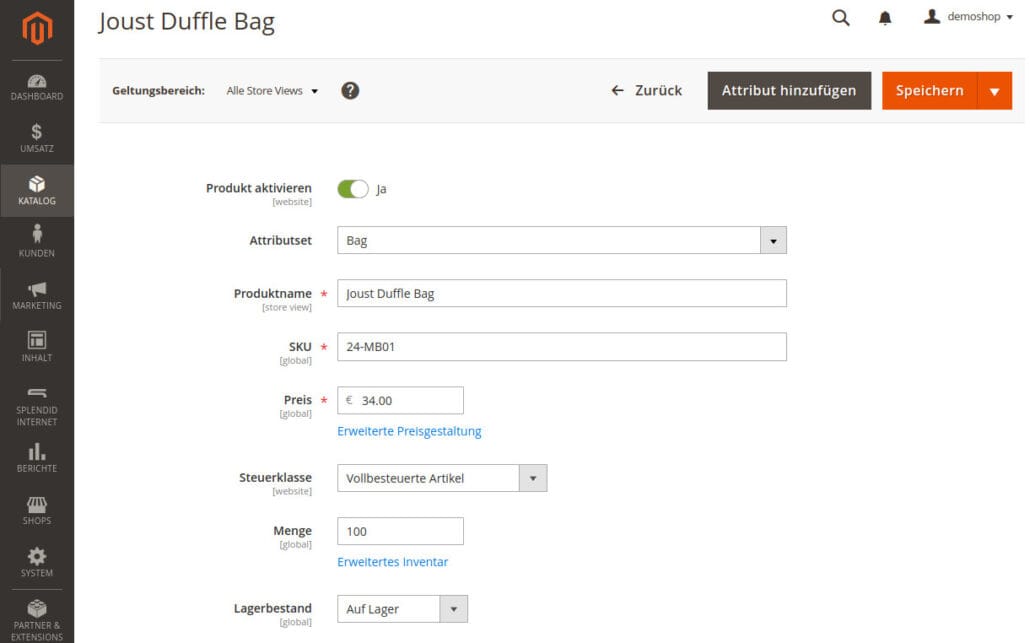 Magento Produktadministration