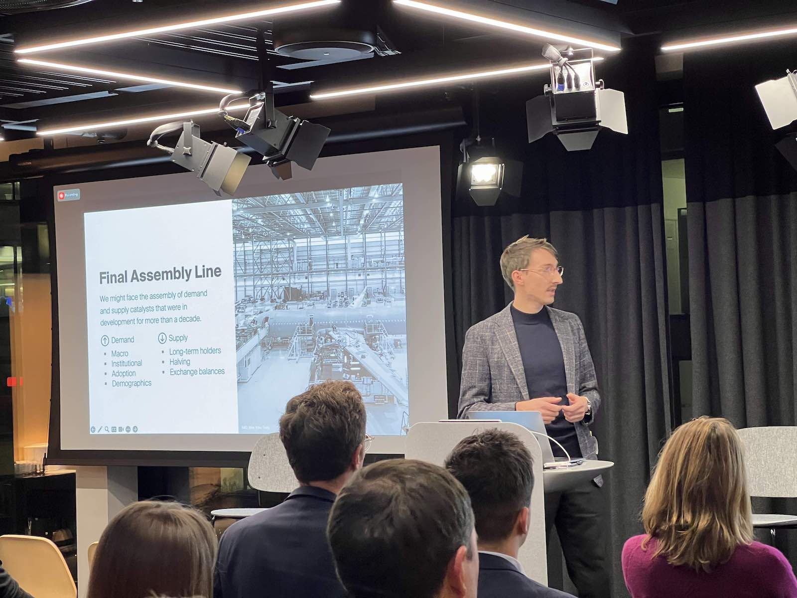 Last week, I attended the 2024 Crypto Outlook Soirée event at Google Zürich, organized by the Crypto Valley Association, sponsored by Google Cloud. Bitcoin Suisse Senior Research Analyst, Dominic Weibel, first gave a presentation which was followed by a panel discussion moderated by Jérôme Bailly whom I know from the early Magento days.