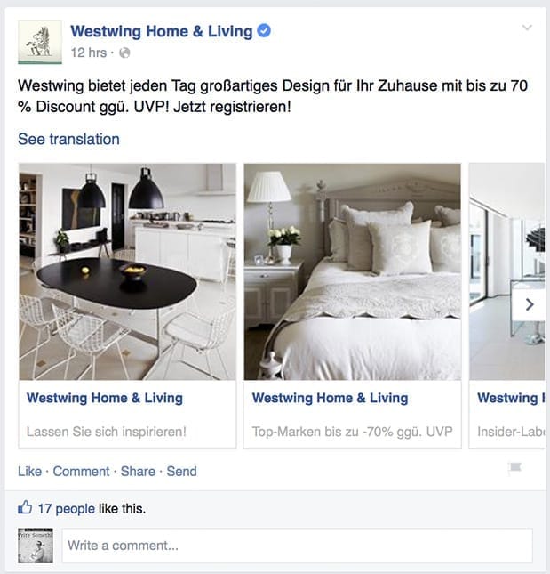 Product Ads bieten Unternehmen unterschiedliche Möglichkeiten, verschiedene Produkte auf Facebook hervorzuheben. Marketer können ihren Produktkatalog hochladen und Kampagnen erstellen, bei denen für bestimmte Produkte spezielle Zielgruppen festgelegt werden. Alternativ haben sie auch die Möglichkeit, Facebook automatisch die jeweils relevantesten Produkte via Werbeanzeige ausliefern zu lassen. Die Produkte können in Werbeeinheiten mit einem Produkt oder mit mehreren Produkten gezeigt werden.