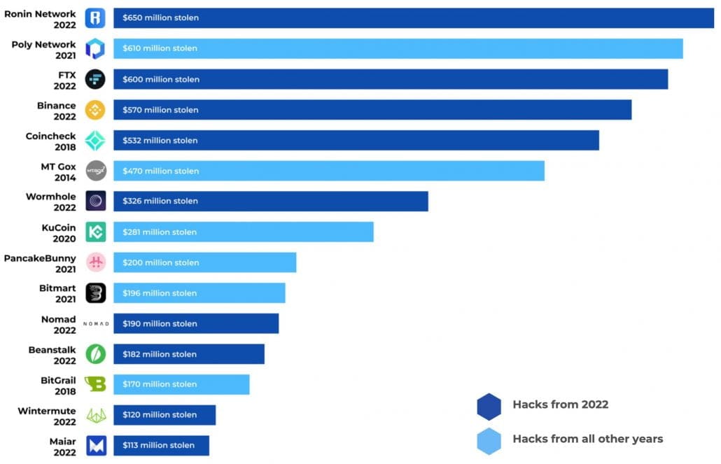 According to AnChain.AI of the top 15 crypto hacks of all time by value stolen in USD, 9 took place in 2022.