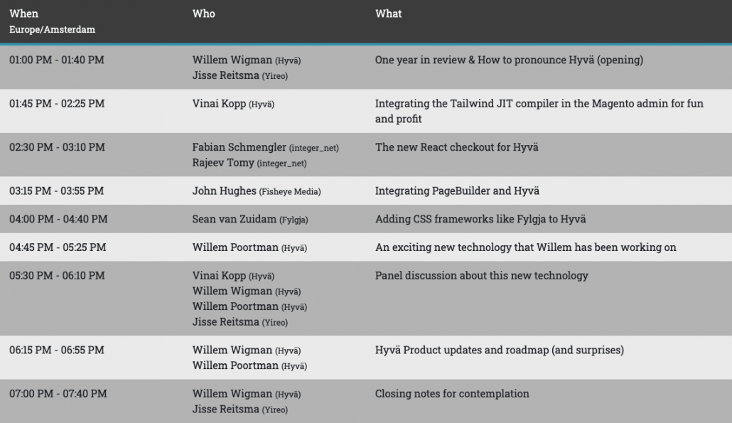 And if that wouldn’t be enough, Willem & Willem had another surprise announcement: Hyvä Magewire Checkout. No Knockout JS, no React, just PHP – I happen to know some developers who might kill for that!