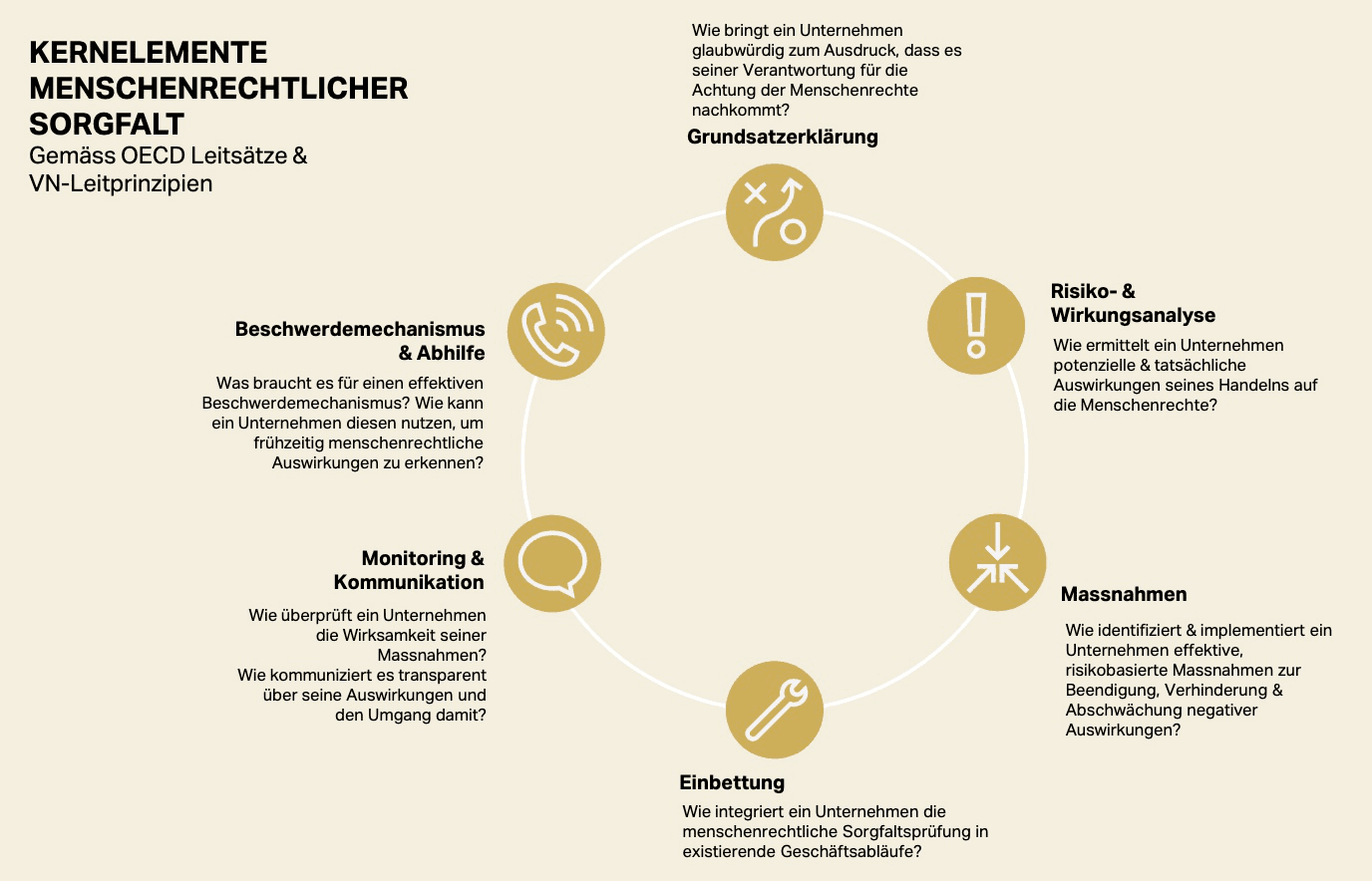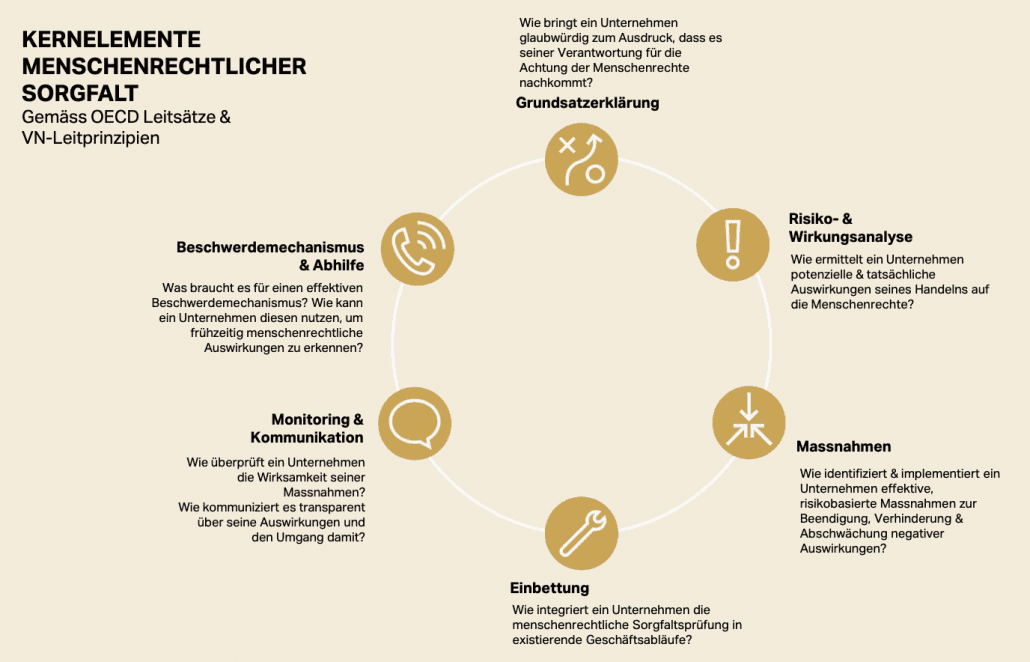Ziel der menschenrechtlichen Sorgfalt ist es negative Auswirkungen auf Mensch und Umwelt zu vermeiden, die durch das Unternehmen selbst oder durch Akteure der vor- und nachgelagerten Wertschöpfungskette verursacht werden.