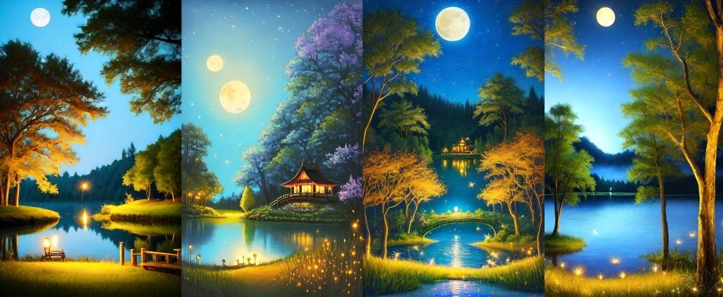 Diese Bilder sind Versionsvorschläge aus einer Textaufforderung in dream.ai, als Trost für die verpasste Schaffhauser Glühwürmchen Saison.