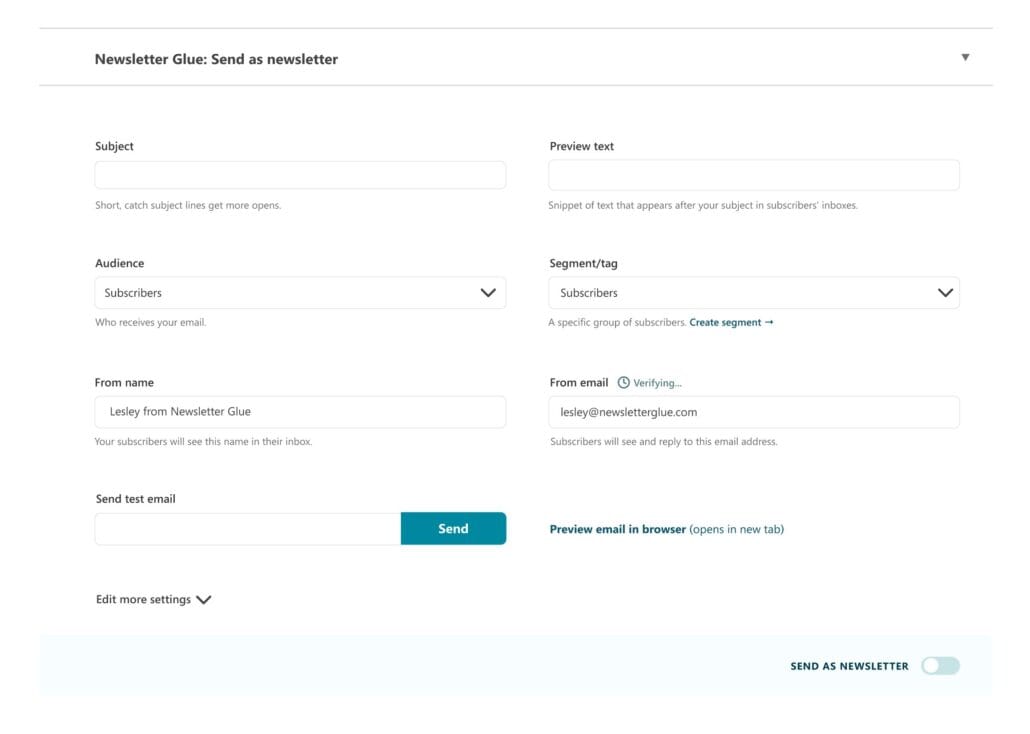 In January 2019 we started publishing our newsletter with the new WordPress Gutenberg editor. Although there are various WordPress newsletter plugins to send WordPress posts as a newsletter, when looking for newsletter plugins that also support the new block editor end of last year, we stumbled upon Newsletter Glue, a WordPress plugin that enables you to send any post or page as a newsletter without manually copying and pasting the content into your newsletter tool.