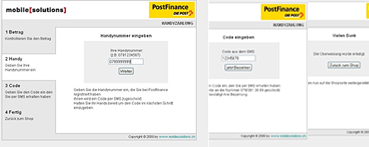 Die Bezahlung ist denkbar einfach: Im Webshop die Bezahlart «Handyzahlung» auswählen, die mit dem PostFinance-Konto verbundene Natelnummer und den daraufhin via SMS empfangenen Sicherheitscode eingeben – fertig!
