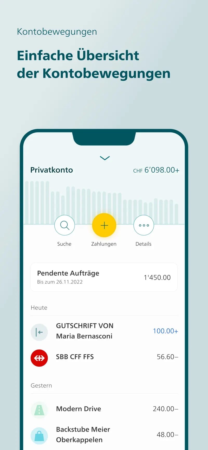 - Verbesserter und einfacherer Bezahlprozess mit der PostFinance App