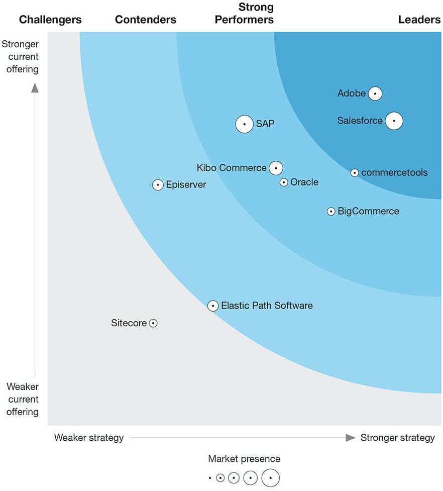 Bei Openstream sind wir nach wie vor davon überzeugt, dass WooCommerce das vielseitigste und günstigste Shop System für KMU (kleine und mittelgrosse Unternehmen) ist. Magento (ein Adobe Unternehmen) wurde im 2. Quartal 2020 im Rahmen des The Forrester Wave™ Vergleichs von B2C (Business to Customer) und B2B (Business to Business) Shop Systemen (Commerce Suites) als Leader bezeichnet. Episerver Commerce ist das einzige Shop System aus dem contentmanager.de Vergleich, welches im Forrester Bericht ebenfalls auftaucht, allerdings nicht als Leader, sondern als Contender (Herausforderer).