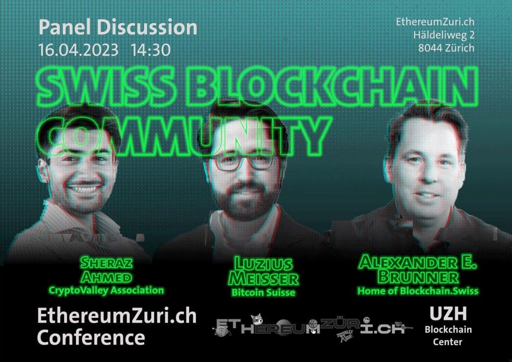 Since I couldn’t attend personally on Sunday, I tuned in to the live stream listening to computer scientist and economist Luzius Meisser’s talk on Frankencoin, followed by a high profile Swiss Blockchain Community Panel which Luzius was also part of, together with Sheraz Ahmed and Alexander Brunner, moderated by Swiss NFT Association Vice President Victor Koetter.