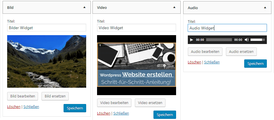 Neu sind die drei Medien-Widgets, mit denen man Bilder, Videos und Audiodateien als Widget anzeigen lassen kann. Außerdem lässt sich der Text in Text-Widgets nun einfach auch für Laien per Visuellen-Modus formatieren, ähnlich dem für Posts, jedoch noch nicht bei allen Themes.